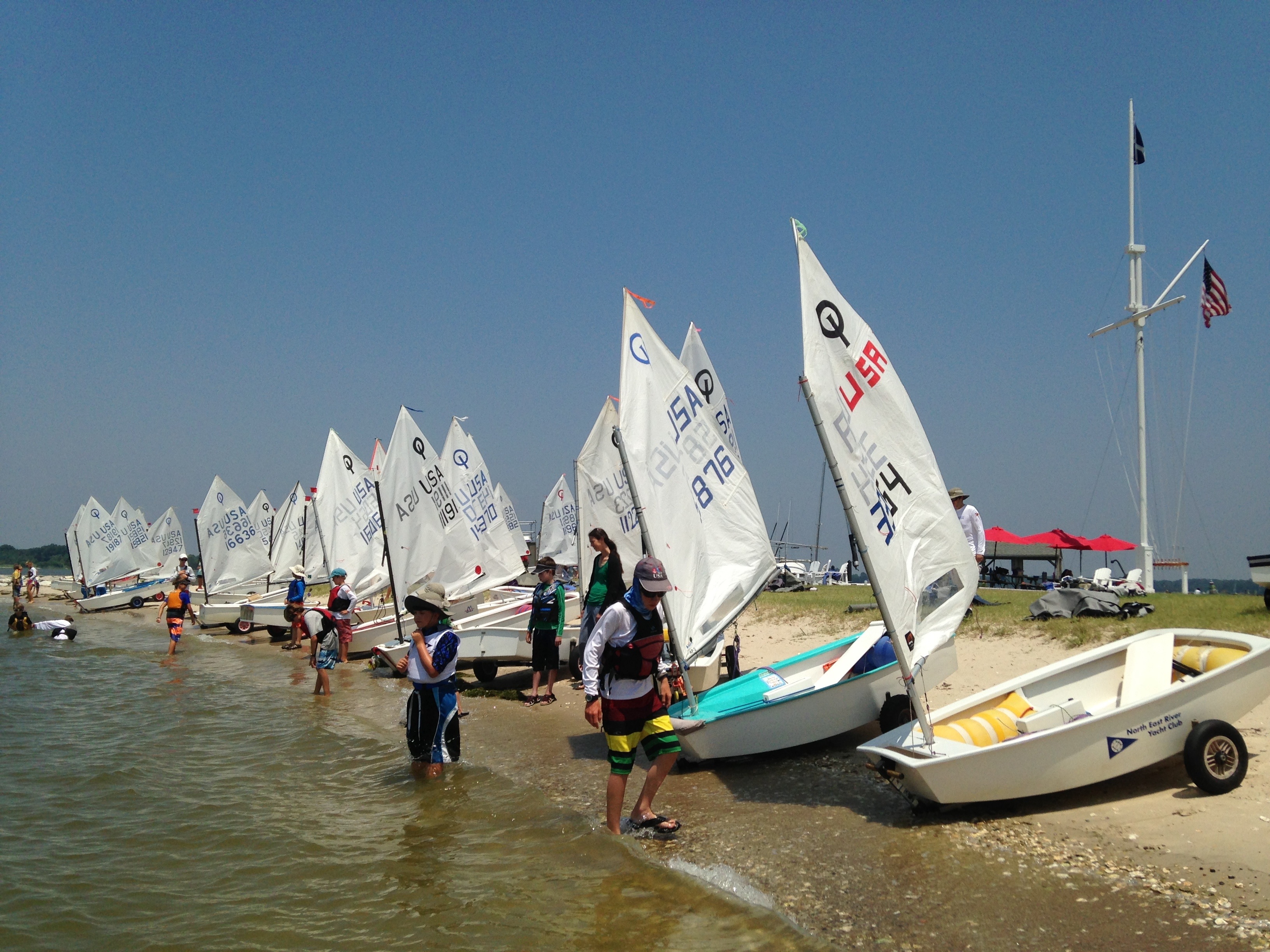 OPTI fleet returning to the beach at TAYC →