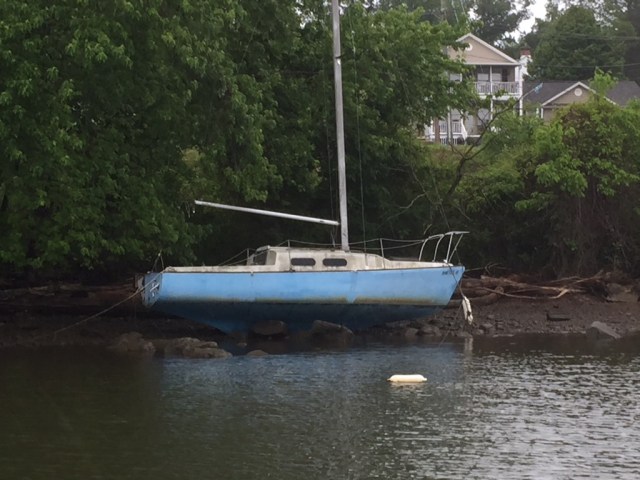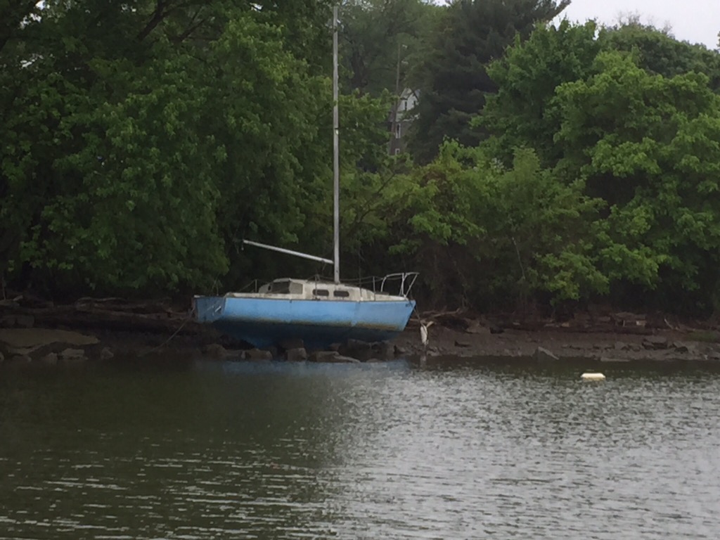 Beached on a rocky shore