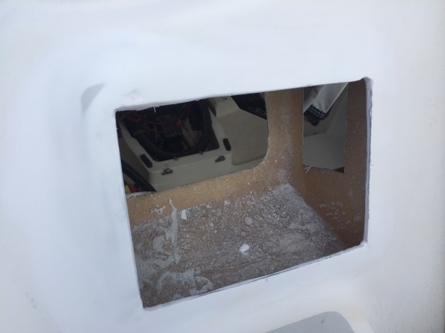 I still need to do a little fairing to make it fit. Ultimately we will have three new B&G Vulcan 7 inch displays and one B&G Zeus3 7 inch display. The three Nexus displays will move to the mast.
